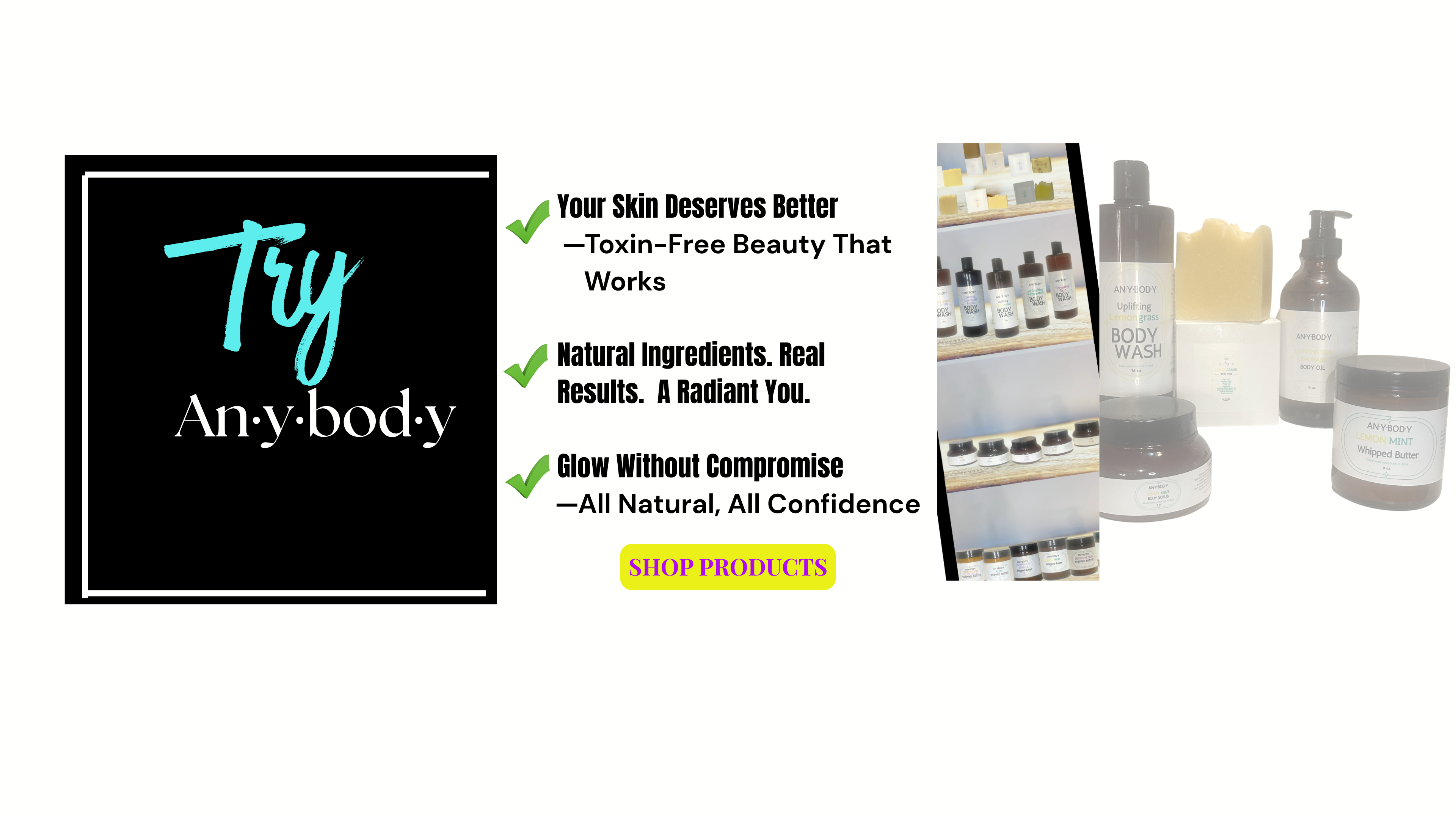 - We’ll help you create a customized self-care day/night featuring An·y·bod·ys products, skin care rituals, and education